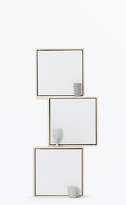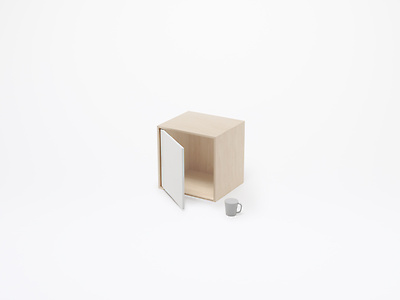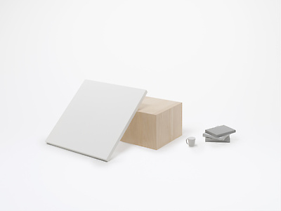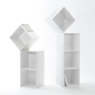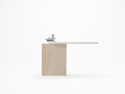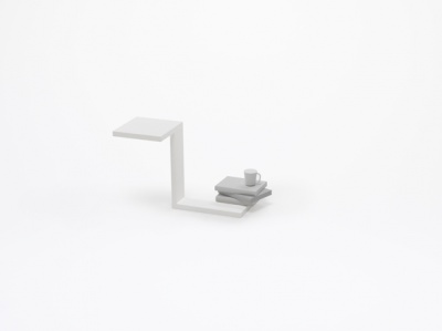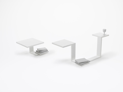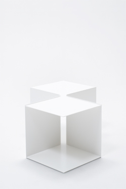 ( à gauche ) Bois de tilleul, bois laqué et objet en acier massif Sidetable 02 : h.40 x 40 x 30 cm Sidetable 03 : h.55,5 x 129,5 x 113 cm" >Agrandir l'image