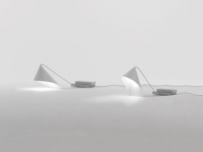 Fibre vulcanisée peinte et objets en acier massif peint Petite lampe h.36 x 30 x 63 cm" >Agrandir l'image