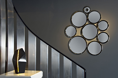 Laiton nickelé et miroir 93.5 X 84 cm (le miroir)" >Agrandir l'image