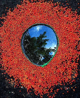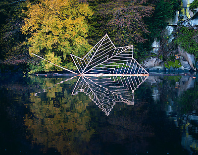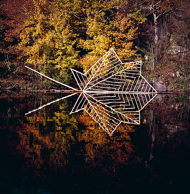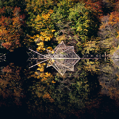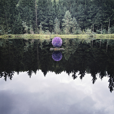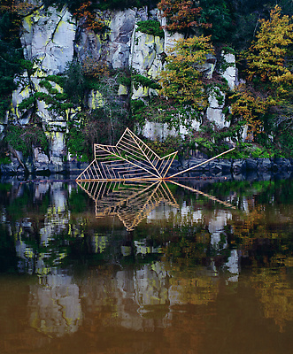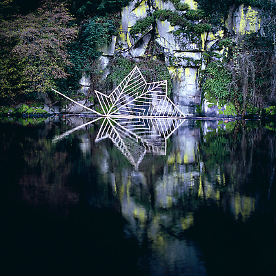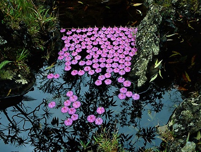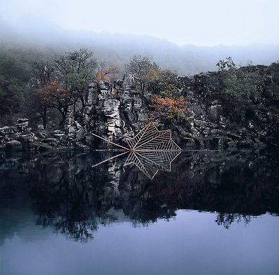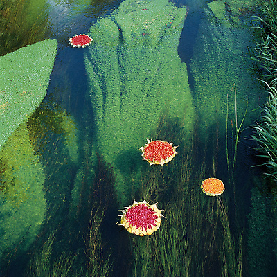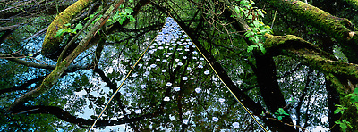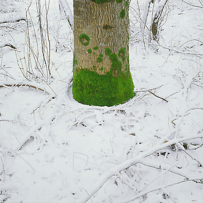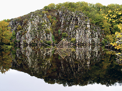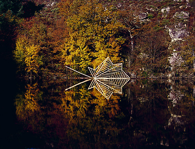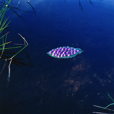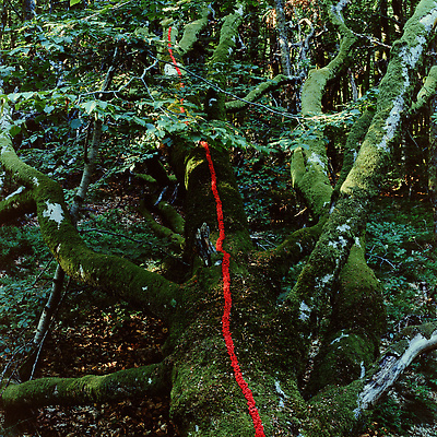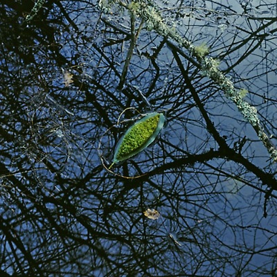 Earth, water, hazel branch, bluebells, dead leaves. Vallery, Yonne, France, 2000
